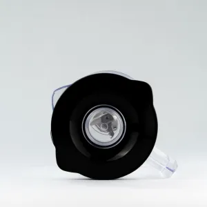 Copo completo com faca em inox, tampa de plástico e sobretampa em acrílico permitindo dosagem segura durante o uso.