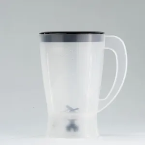 Copo completo com faca em inox, tampa de plástico e sobretampa em acrílico permitindo dosagem segura durante o uso.